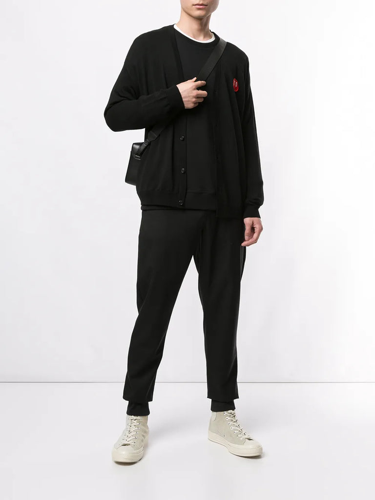 This logo patch asymmetrical cardigan combines sophisticated design with subtle branding. Crafted for elegance and comfort. Ideal for layering, it elevates both casual and refined outfits while showcasing minimalist detail through the carefully placed logo patch. Perfect for those seeking a distinctive yet versatile wardrobe staple.