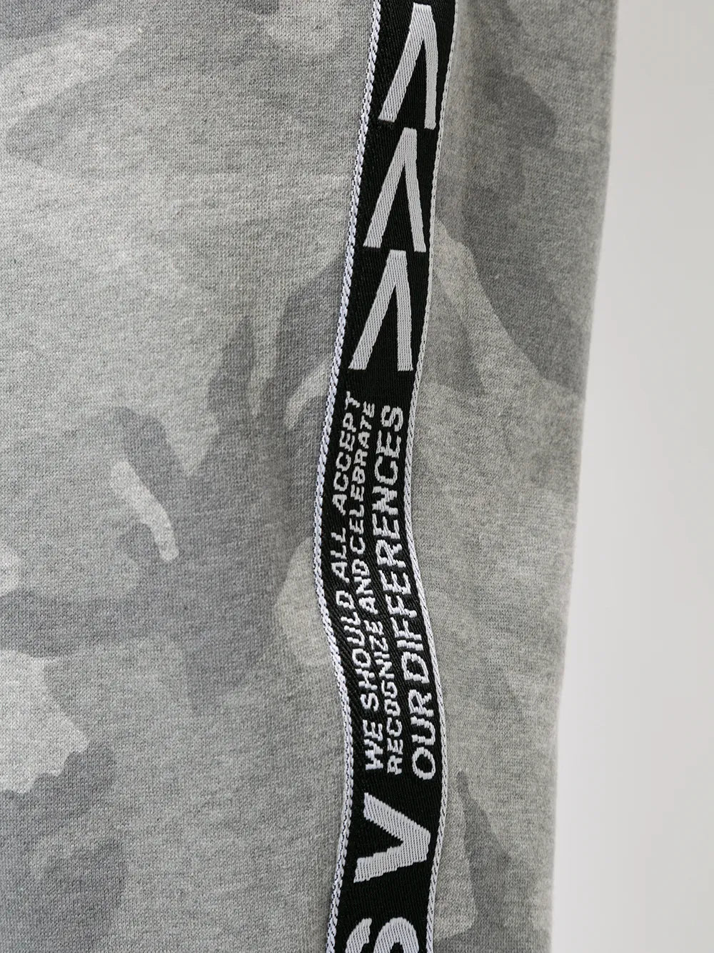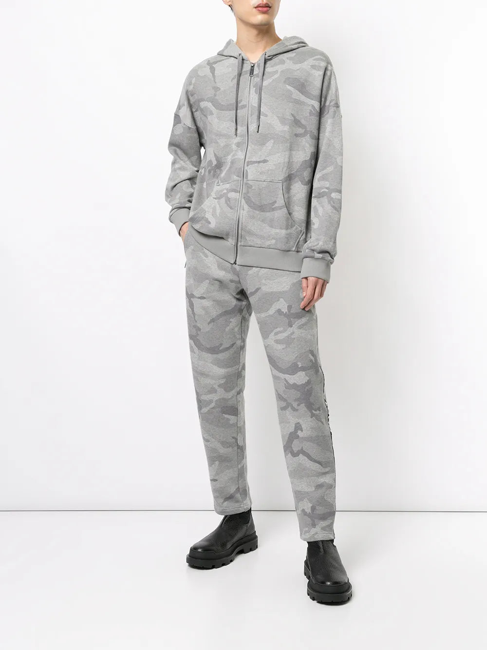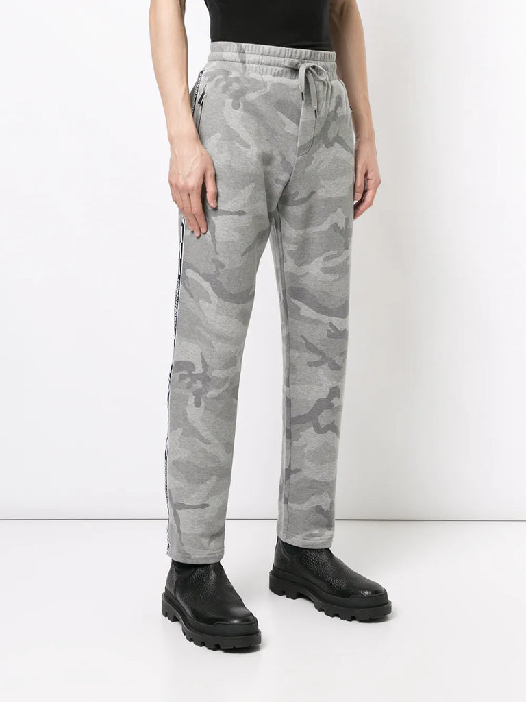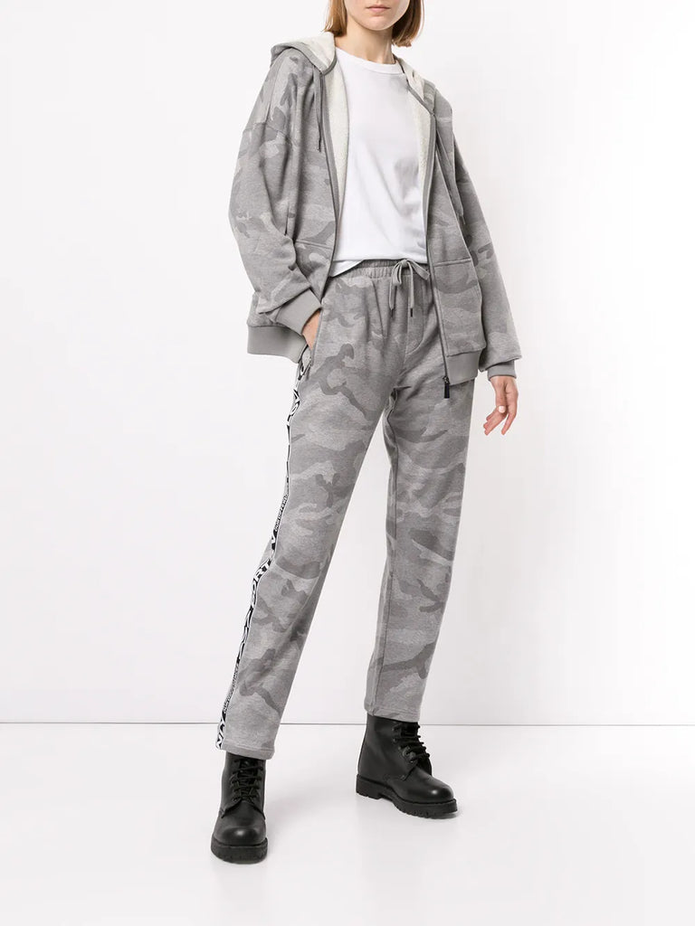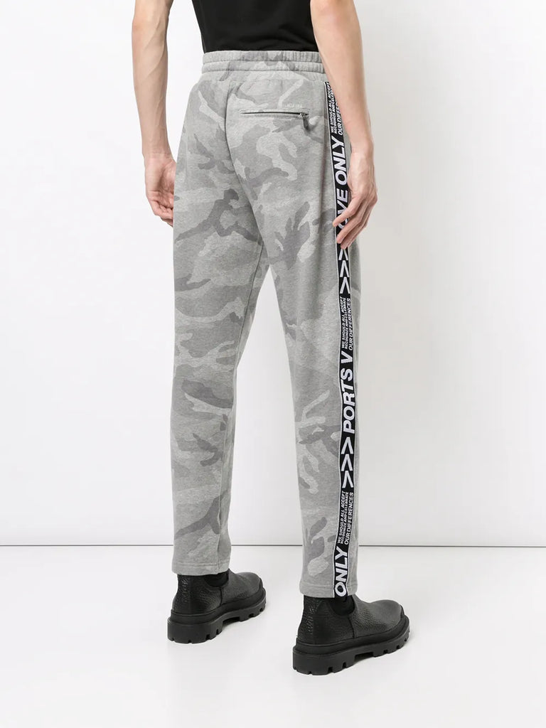 Camouflage track pants merging utilitarian aesthetics with contemporary comfort. Strategic patterning adds visual depth while maintaining versatile styling potential. Engineered for both performance and refined casual wear.