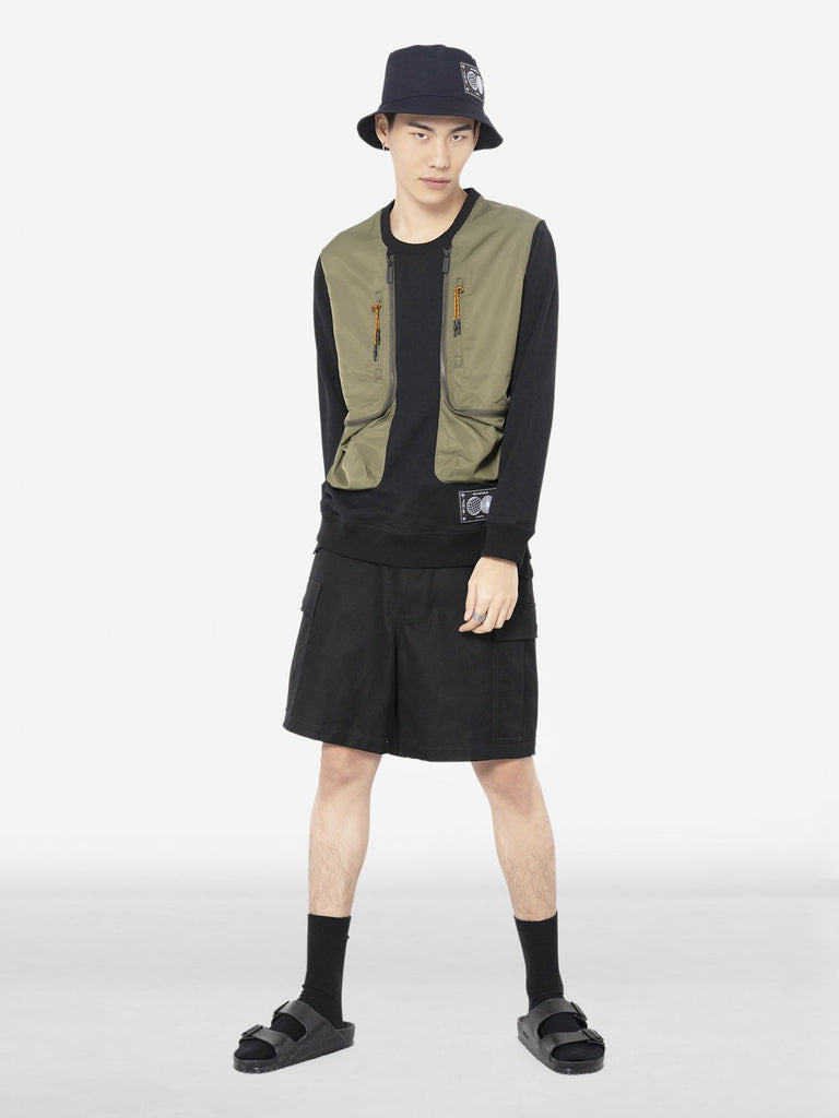 This whimsical sweatshirt's most striking element is its contrast fisherman vest front paneling, which creates a trompe l'oeil of a vest. Stay snug in this all-day comfort top.